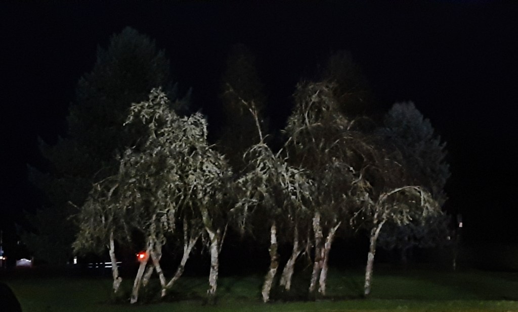 The pines spread their arms to greet the sky and shelter where the wandering rooster met its fate by predators.