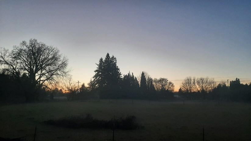 A man and two children across the way from our back field are playing with swords made of branches, taking on each other to test their might with respect, courtesy – and fierce war cries.