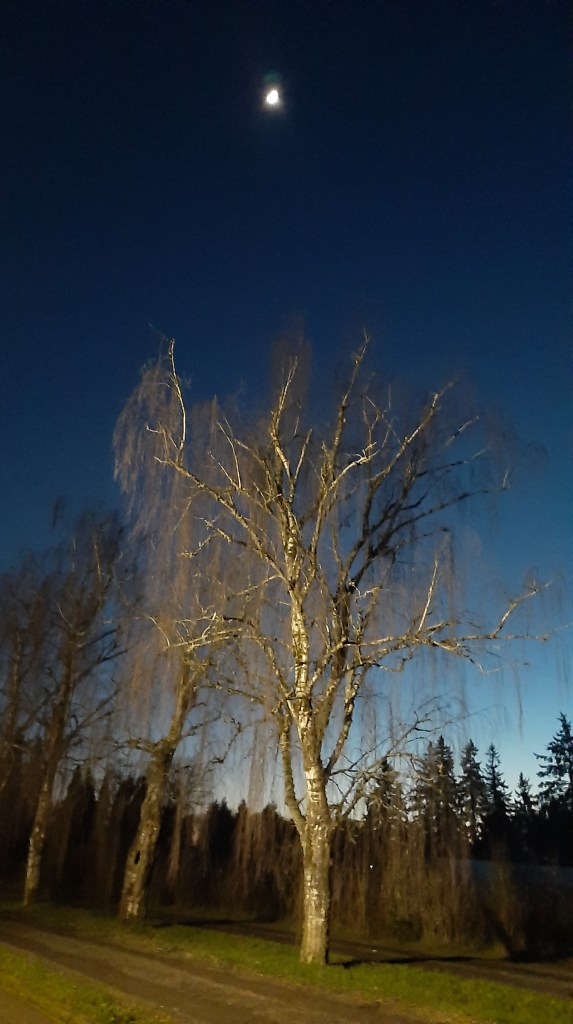 Tension knots from overexcitement’s pressure to push to new levels – added to by a heavy baking dish falling and breaking; a mirror in frame sliding and blocking the door/later falling hard against and into top of my right thigh; and a cat getting almost fatally ill from eating most of a thin, plastic food handling glove.
