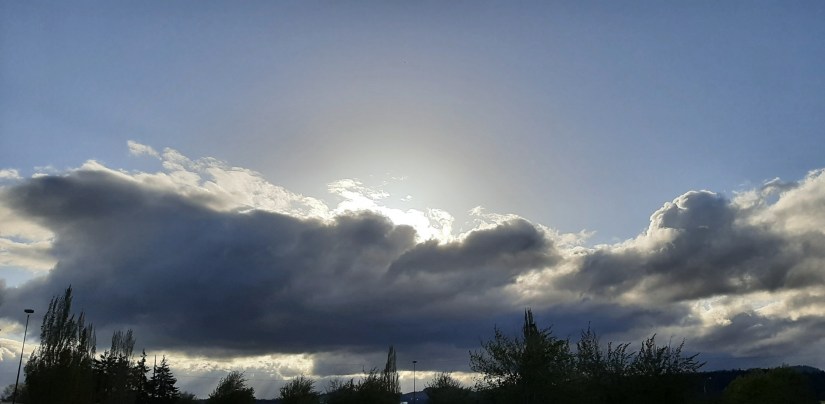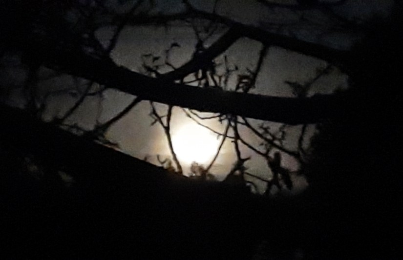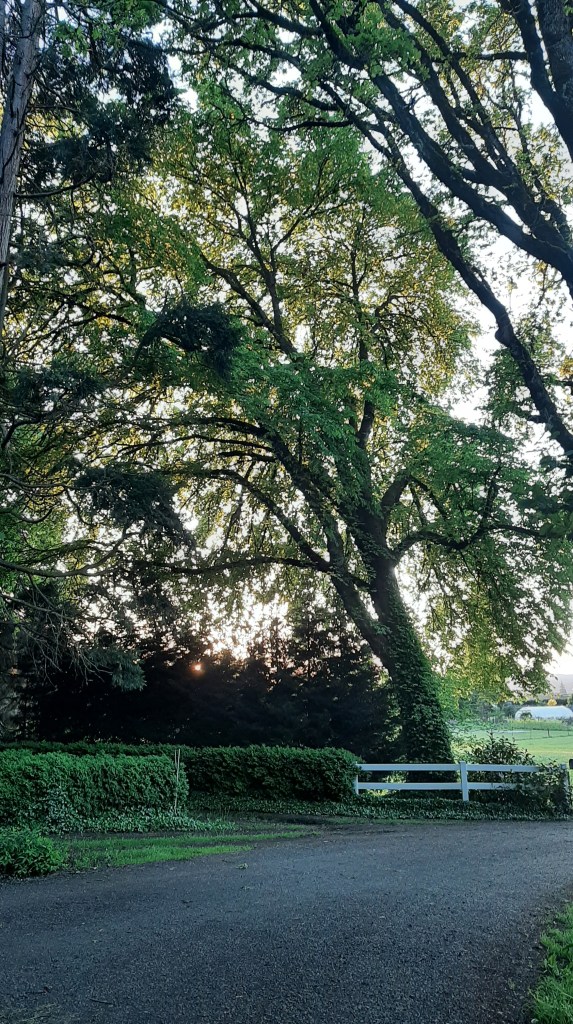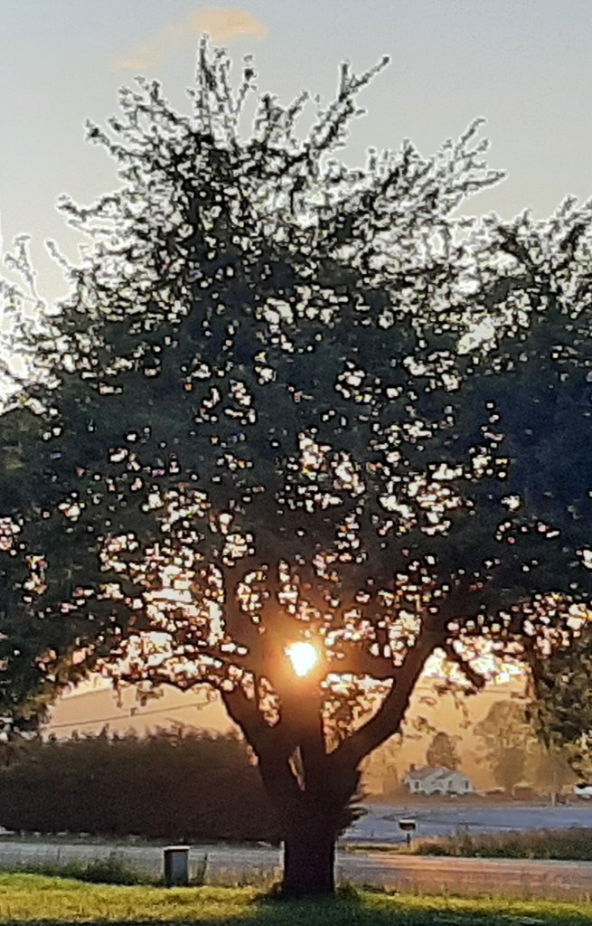 See her standing in the fork of the tree, her face aglow as the setting sun’s beams? A leaf dolly clutched in her left side hand as she looks at us – trying to understand why we would cut down so many growing things, without asking permission of Nature’s Sun King.