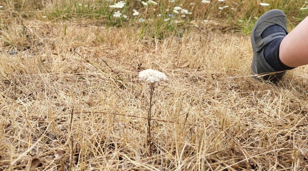 She happened upon it one hot day while walking on foot, noticing its parched leaves curled as it struggled to survive with no nearby source of water. Since that day, by chance again passing while continuing moving, she’s given it bottles of water – determined that it would have a chance to endure like the clustered others.