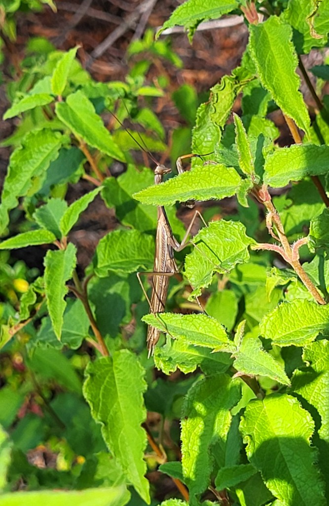 When I investigated, I found out that it was a lovely bronze-brown mantis, so picked it up and let it rest on my hand while I captured some video.