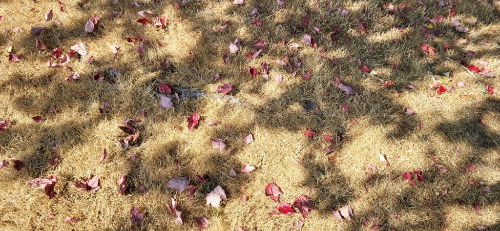I put a hand on a branch and tell it to just hold on until the rest of the trees drop their leaves. Then, the rains will soon come and it will get its reprieve.