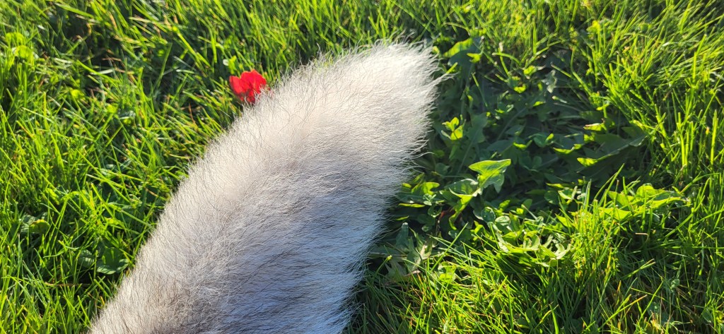 I was trying to photograph whatever is under this fluffy tail, but my wolf decided to sit down and “conveniently” hide it from me!