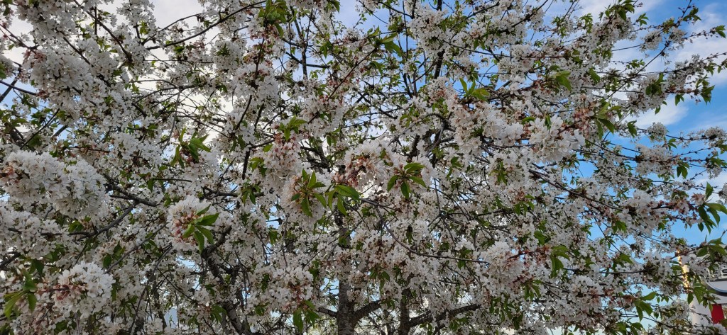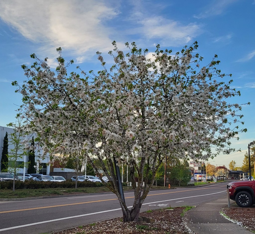 The root-injured and shocked tree that I kept nursing with water through last year’s hot summer into the fall until the rains came and it could go dormant has survived – and has come back bursting full of life’s energy! WOOT!!!