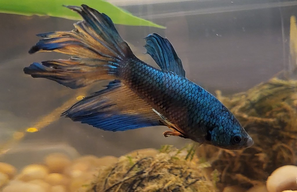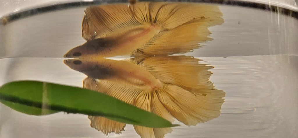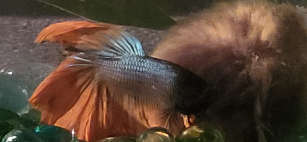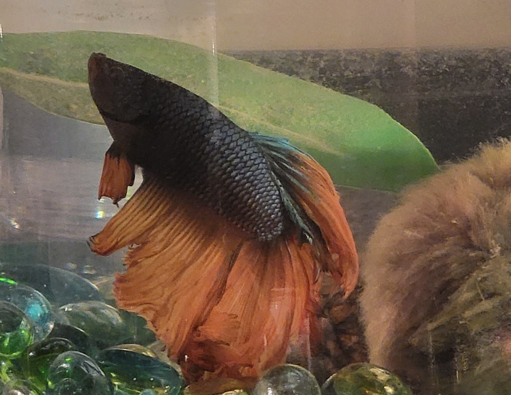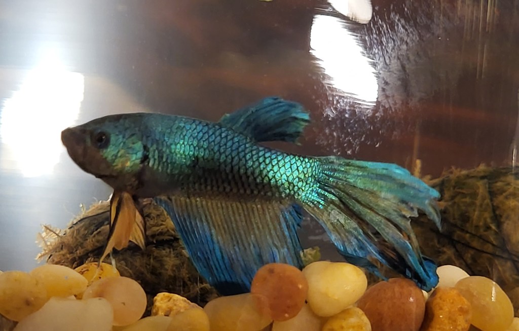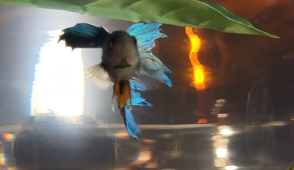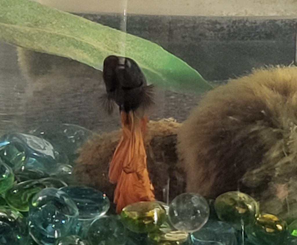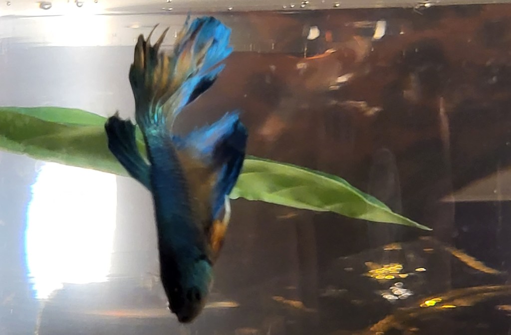 My little rescue buddy. He was no longer doing well in the store, so I brought him home. He is beginning to be able to float well, again.