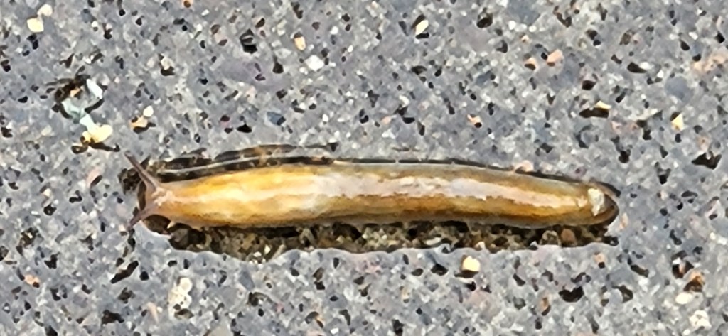 I had already helped save a water-bloated night crawler floundering on the wet sidewalk. For this slimey fella, I chose to use a twig and leaf to transport it to dryer safety.