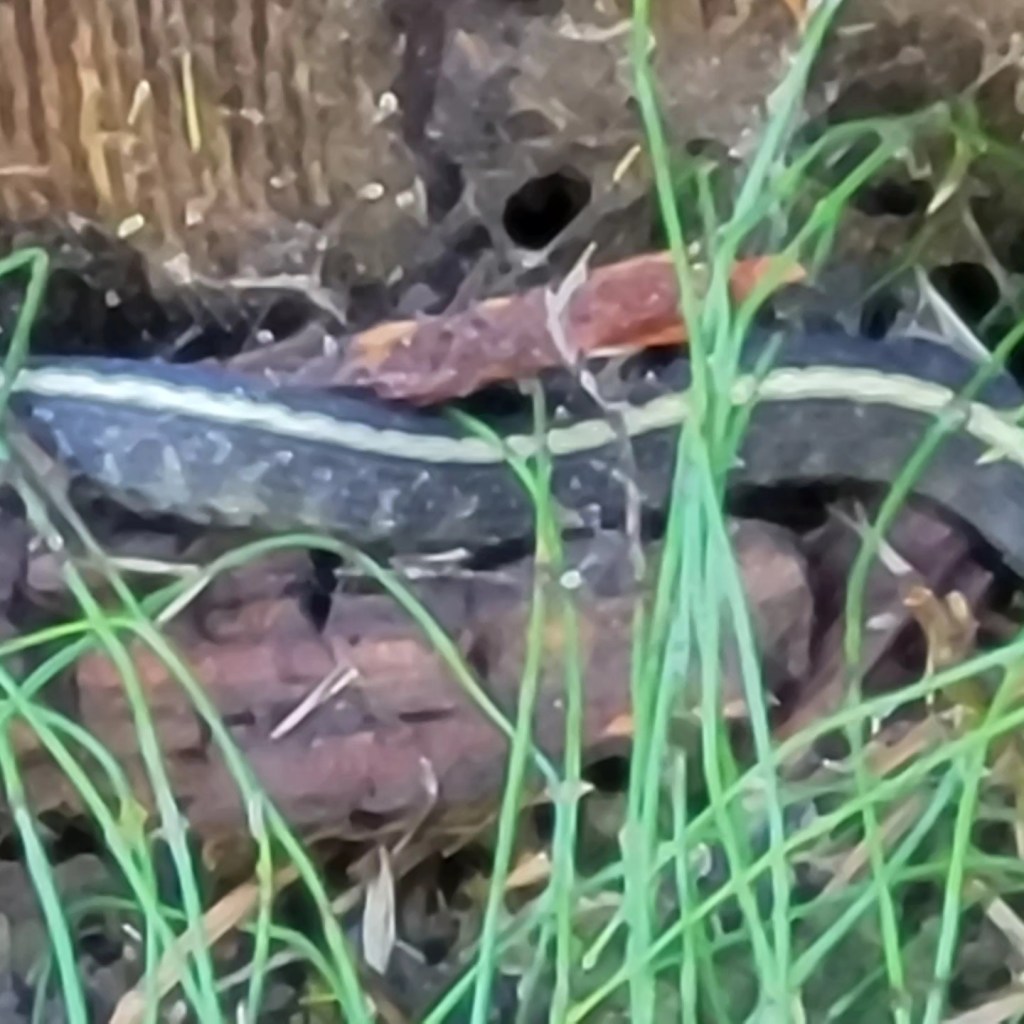 A type of young Oregon gartersnake, but they usually have bright yellow on their sides, as well. What a unique beauty!