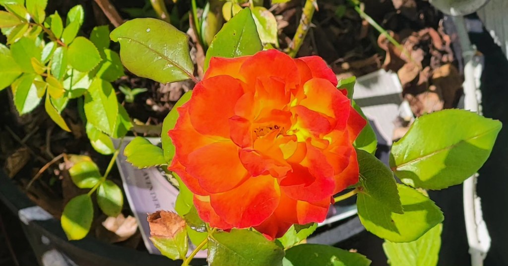 It may look like I planned this, but I had touched the flower as I paused in watering, some petals fell, and then I captured a picture because the rose was so lovely. Sometimes, magic just happens!