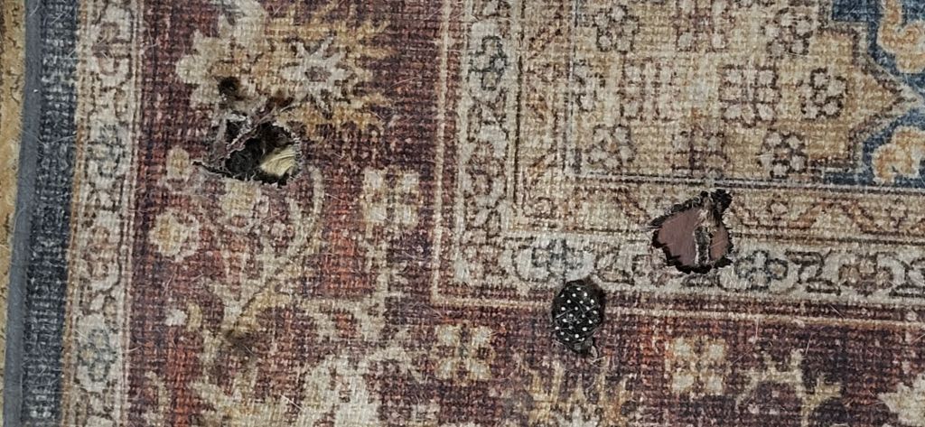This morning’s perfect circular hound-snicking of a beloved bedroom carpet when she was briefly left unattended.