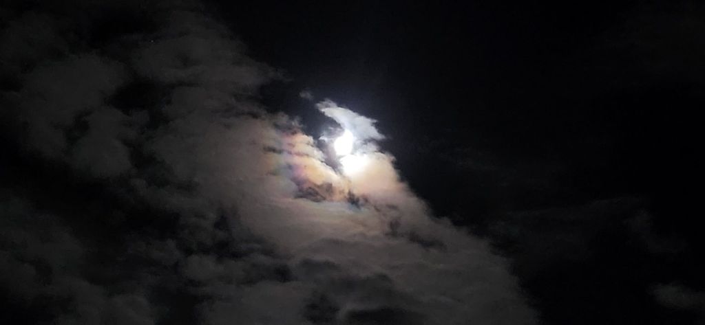 As I walked back out into the night and looked up at the moon, the intensity of dark rainbow-ring diffusion felt aimed at me – as if the Eye of Heaven was peering directly through its microscopic vision.