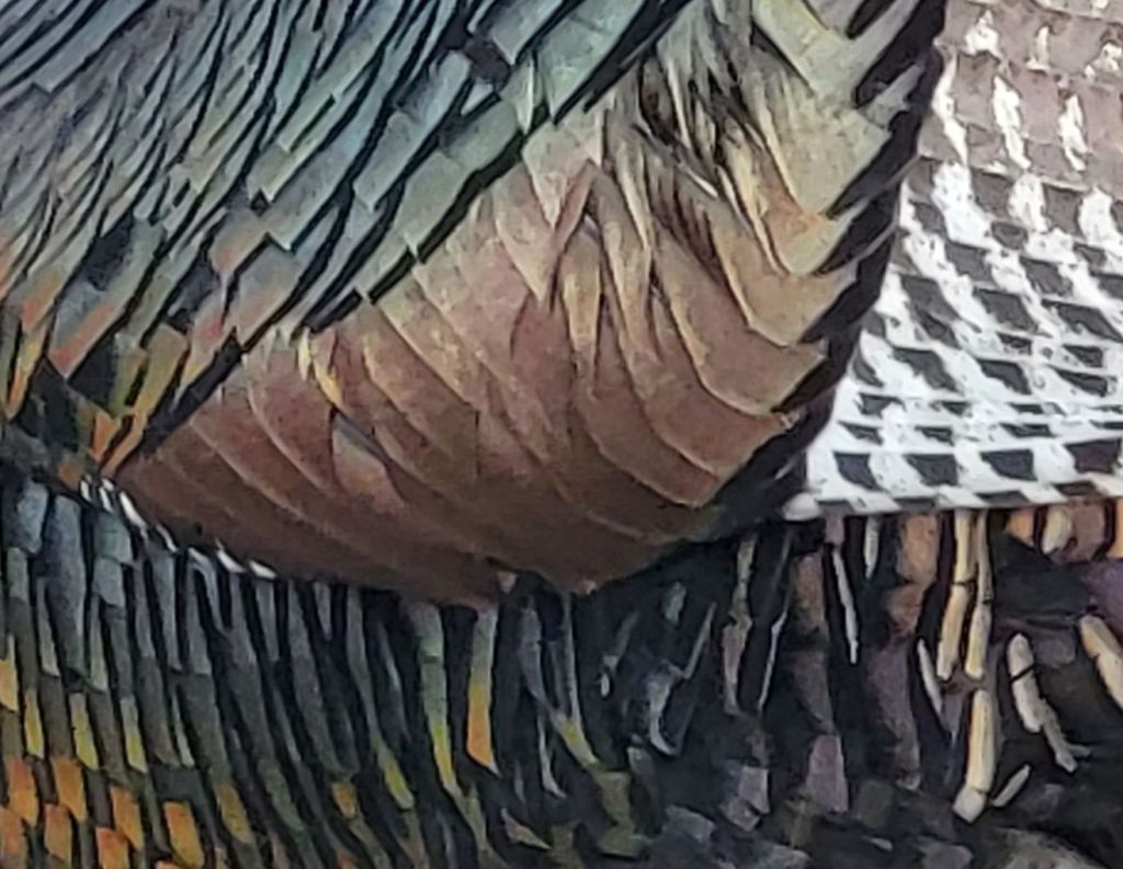I followed a gobbler around this evening. He was strolling at the end of a lane and I just had to meet him. We walked slowly together for some time while I maneuvered around him carefully on foot so as to not alarm him.